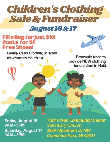 Children's Clothing Sale Fundraiser Aug 16-17!
